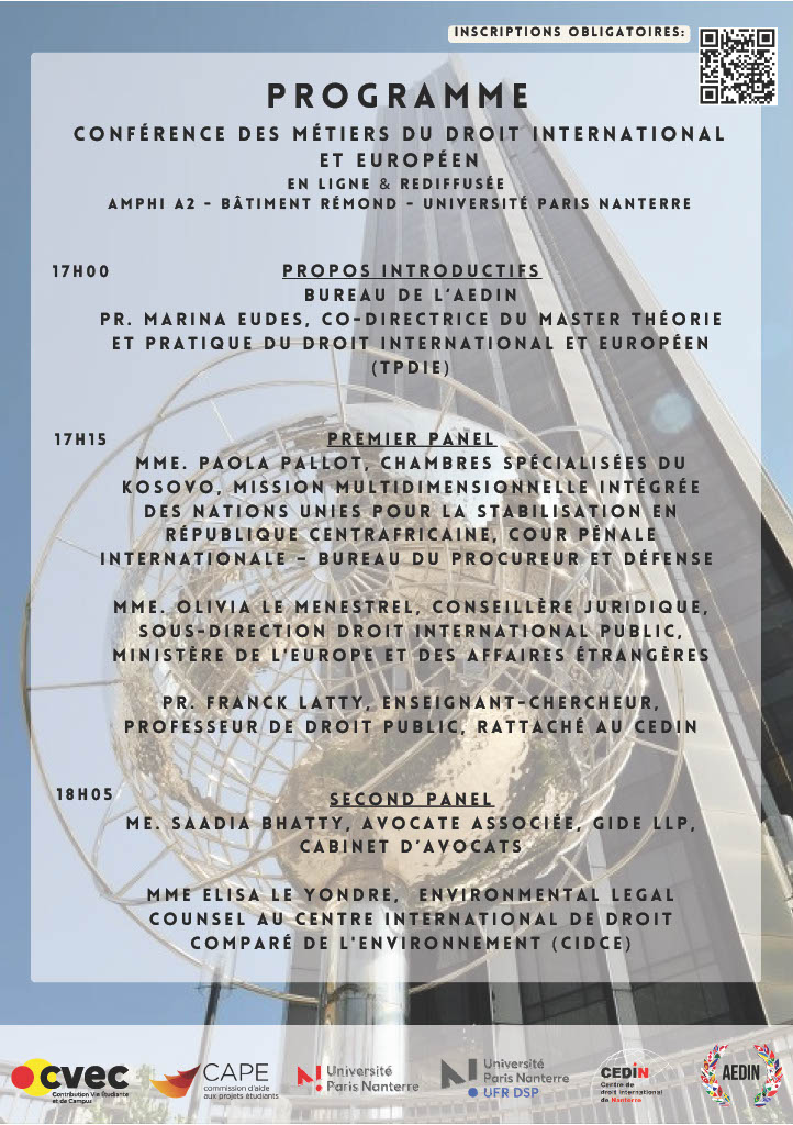 AEDIN > Conférence sur les métiers du droit international