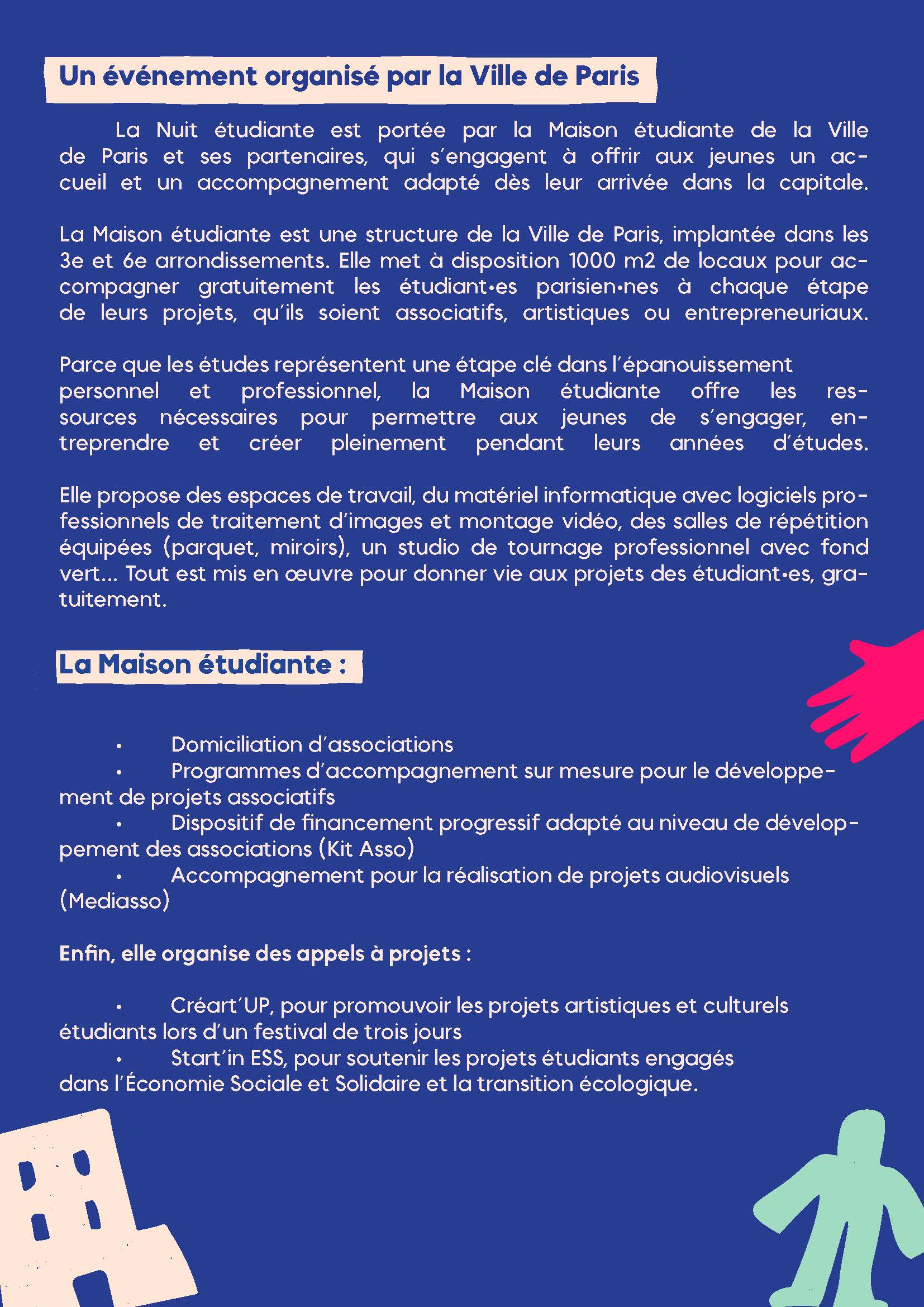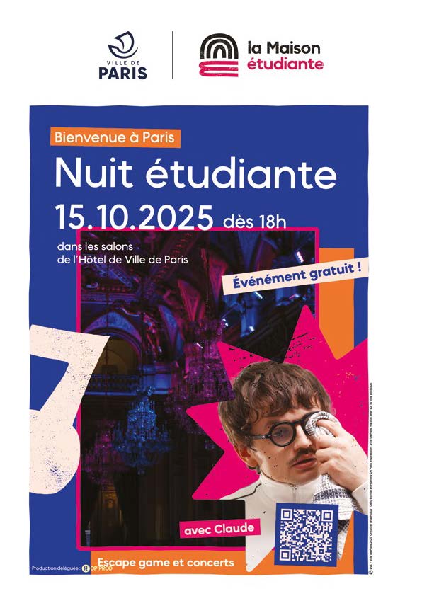 La Maison étudiante organise, le 15 octobre 2025, la Nuit étudiante, un rendez-vous festif et informatif qui présente toutes les ressources et bons plans disponibles pour les étudiant·es à Paris.