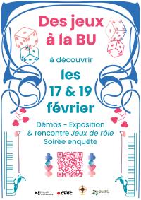 Bonus : A partir du 17 février 2026, la grande BU prête des jeux de société, d'ambiance, de stratégie. Cette collection est financée sur crédits contribution vie étudiante et de campus. A cette occasion, les BU vous ont concocté quelques animations ludiques du 17 au 19 février : programme ici.