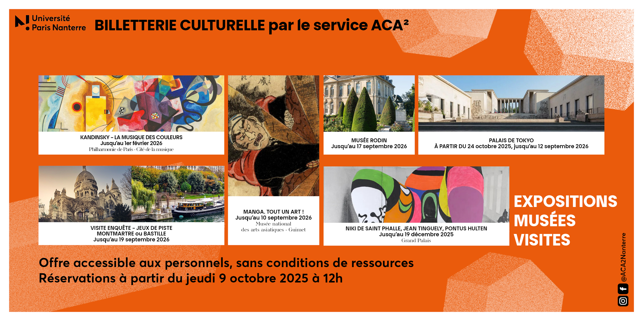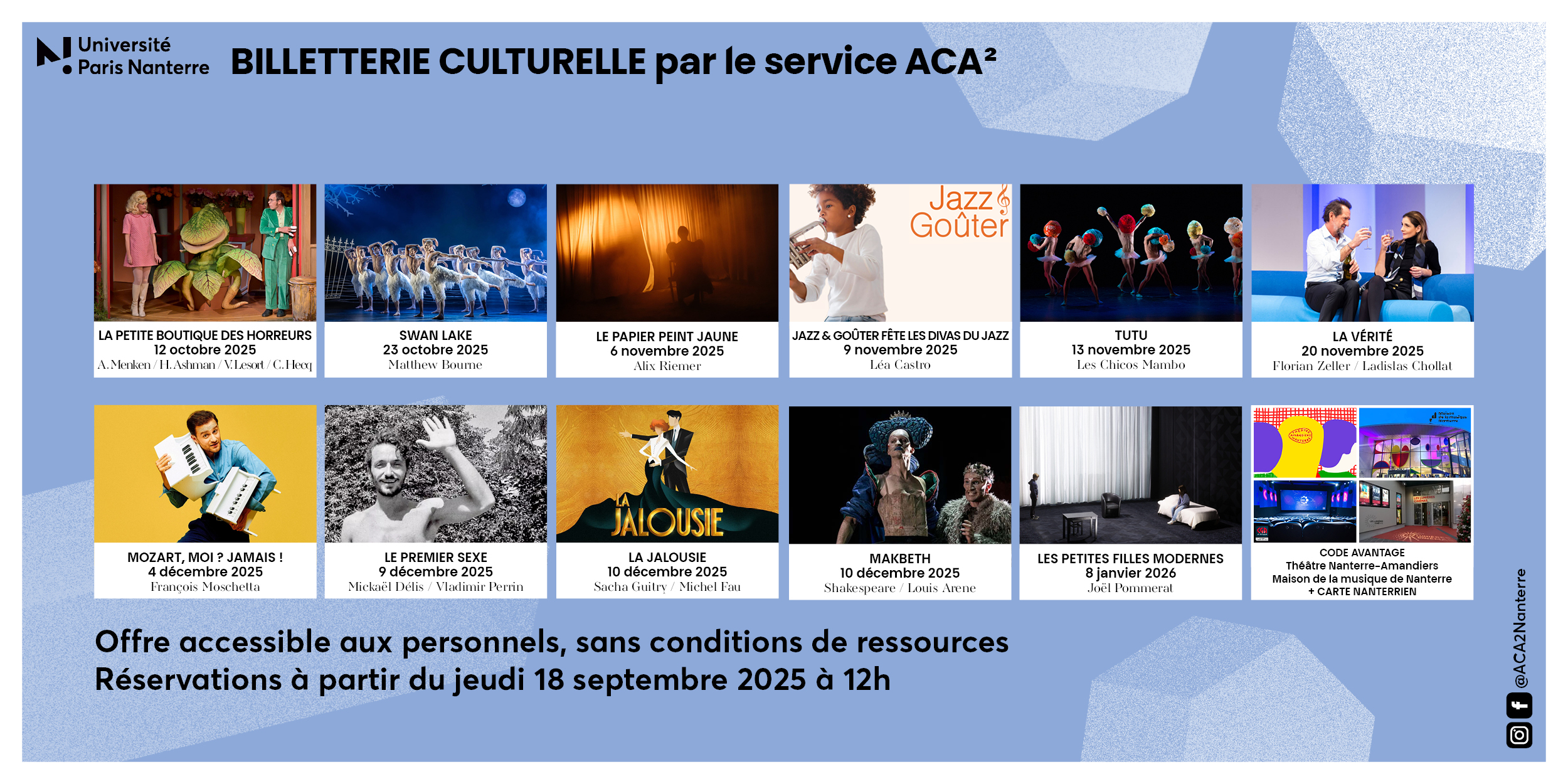 L'ACA² vous propose une offre de billetterie accessible à tou·tes les personnels de l'université sans inscription ni condition de ressources.