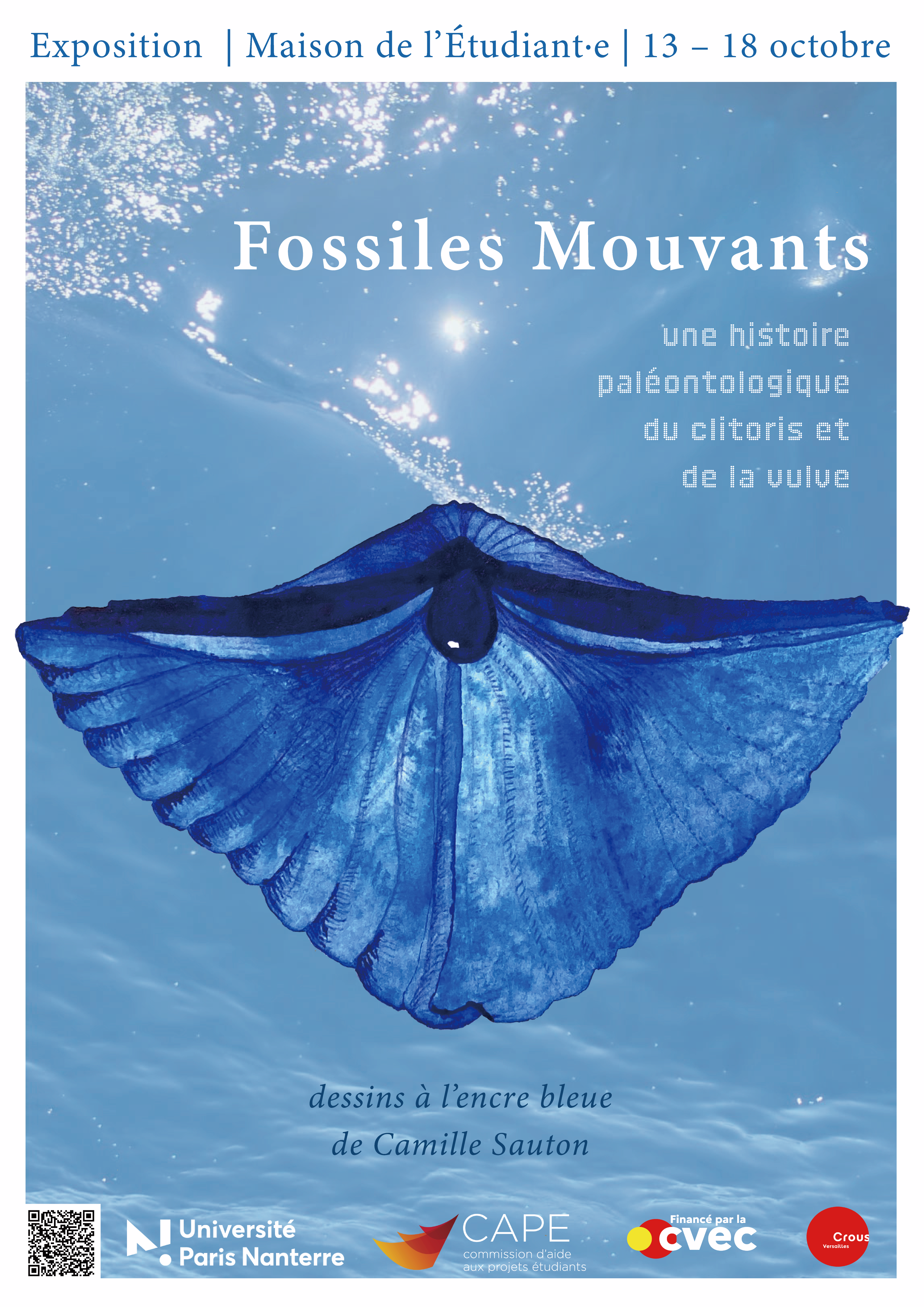 Venez découvrir l'exposition des dessins de coquillages fossilisés réalisés par Camille SAUTON : Fossiles Mouvants, une histoire paléontologique du clitoris et de la vulve.