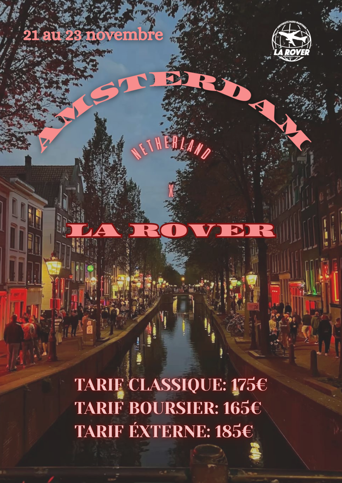 la Rover, association étudiante, organise depuis dix ans des voyages dans les grandes capitales européennes. Le premier voyage de l’association se tiendra cette année à Amsterdam et permettra à 80 étudiants de découvrir la ville et la culture hollandaise. Le projet met l’accent sur la dimension culturelle du voyage avec notamment des visites programmées du Musée Van Gogh, et du musée Anne Franck.
