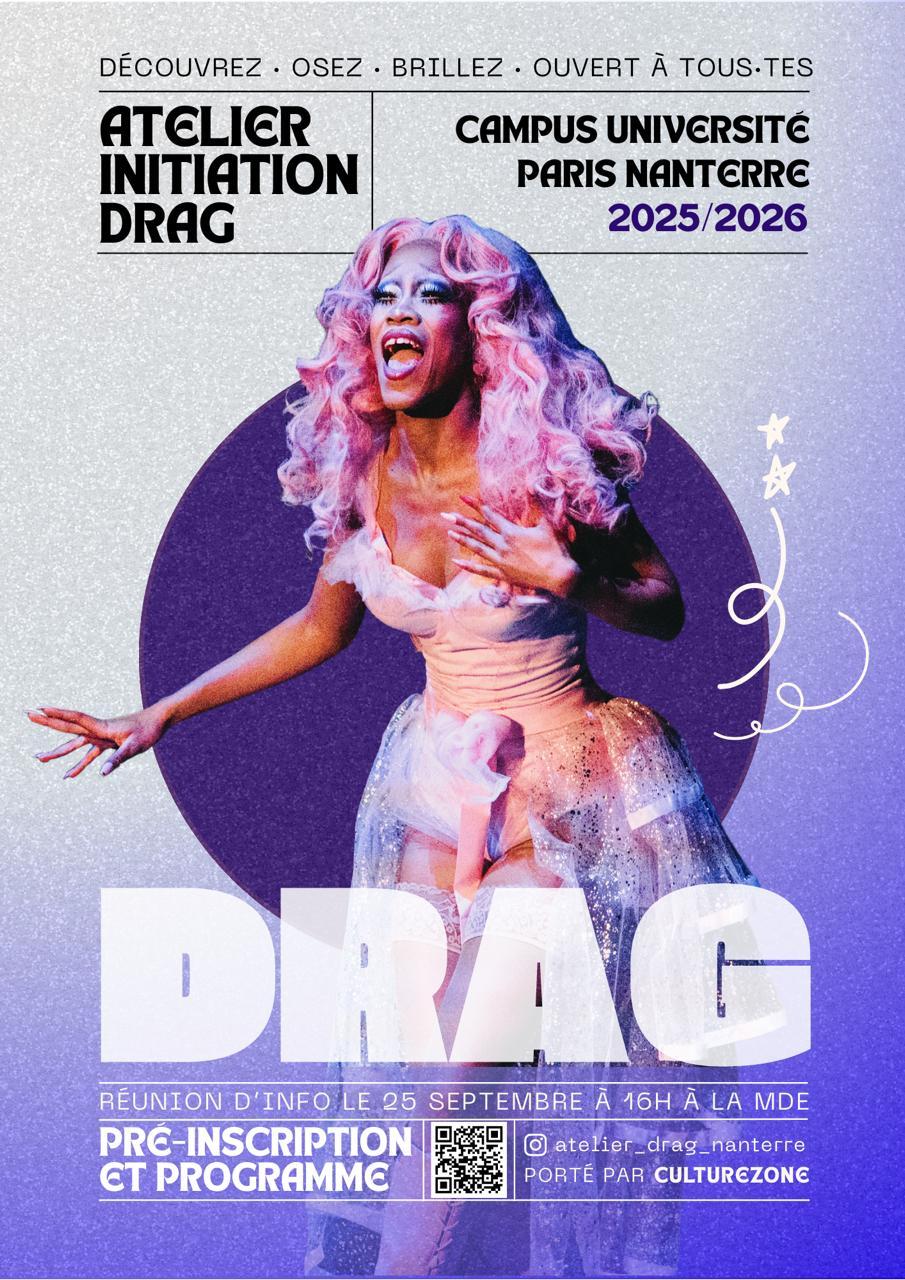 L'antenne de l'association Culturzone propose un Atelier drag articulé au Drag show. Le drag consiste à incarner un personnage exagéré sur scène en portant des vêtements, des accessoires et du maquillage qui sont souvent associés à des genres. C'est un art qui permet d'explorer et de jouer avec les notions de genre et d'identité, tout en offrant une forme d'expression artistique et de divertissement pour le public. Les performances en drag peuvent inclure des chants, des danses, des lipsyncs (interprétations synchronisées de chansons) et des numéros comiques. L’atelier permet à 15 participant·es d’être initié·es à cet art et d’acquérir les compétences nécessaires pour délivrer la meilleure performance possible le tout dans un environnement safe et une ambiance bienveillante. Le show prévu le 19 mars sera proposé en collaboration avec le CCEND dans le cade de la programmation du mois de l’égalité, au théâtre Koltès et comprendra des performances de groupes ou individuelles.