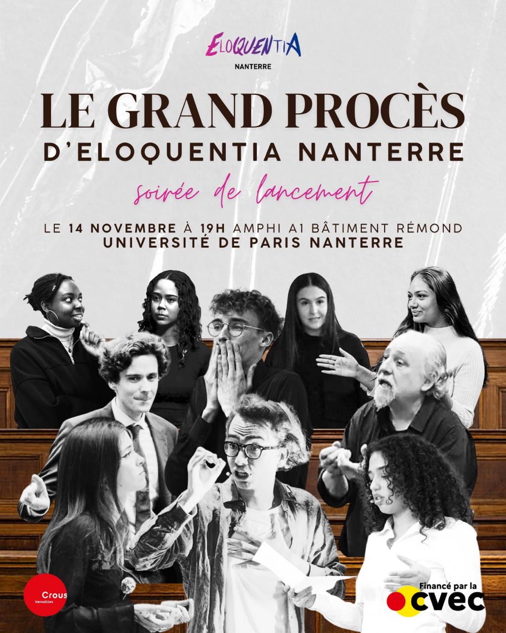 L’association Eloquentia Nanterre est une association de prise de parole en public d’éloquence, ayant pour but de donner la parole à tous les jeunes de 18 à 30 ans, en particulier les étudiants et ceux qui n’ont pas l’habitude de prendre la parole ou qui avait trop peur de le faire. Toutes les activités sont dirigées en ce sens (concours, formations, ateliers…). Il existe des antennes partout en France, dont celle de Nanterre, qui est une des plus populaires du territoire, mais surtout la deuxième antenne créée dans l’histoire d’Eloquentia France.